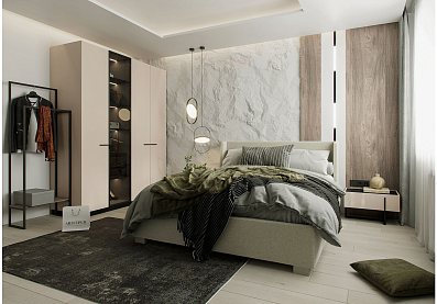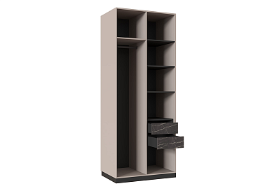 Шкаф Милагро с полками и штангой для одежды Кашемир серый, Камень Пьетра, Черный графит