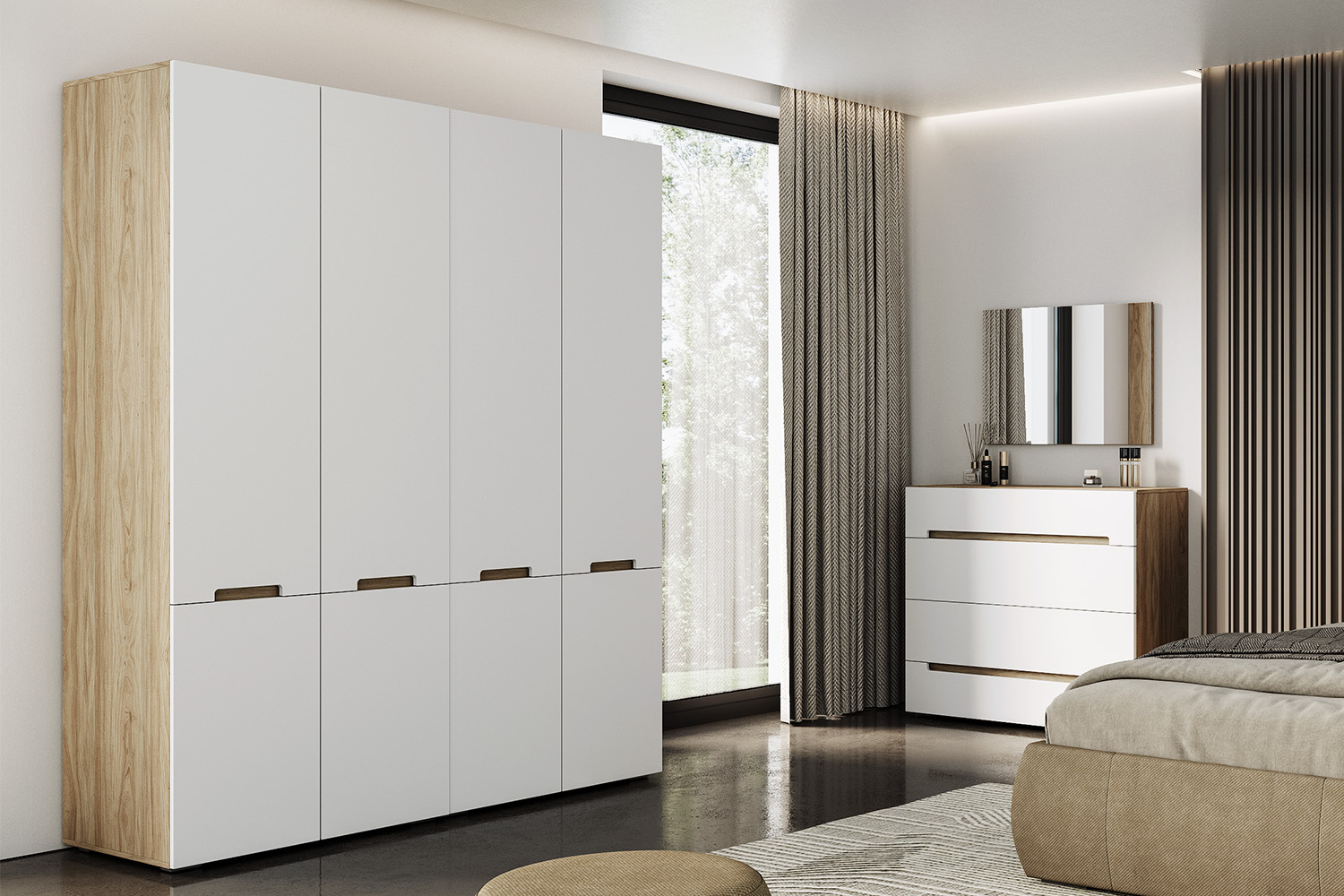 - Cкрытая эргономичная ручка, выполненная посредством фрезеровки фасада;
