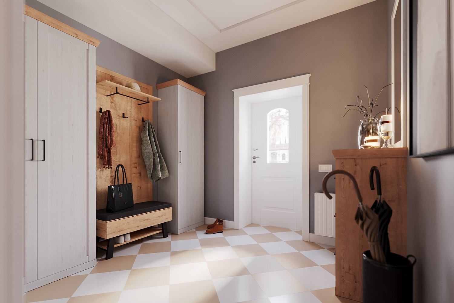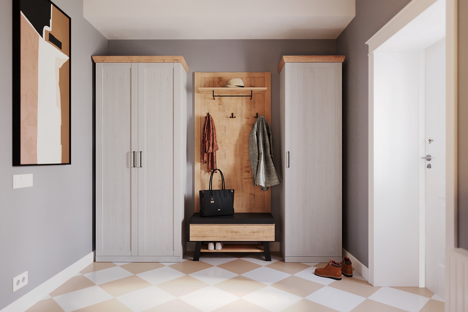 – описание: цвет дуб бунратти, блан шене, назначение для прихожей, стиль современный, минимализм.